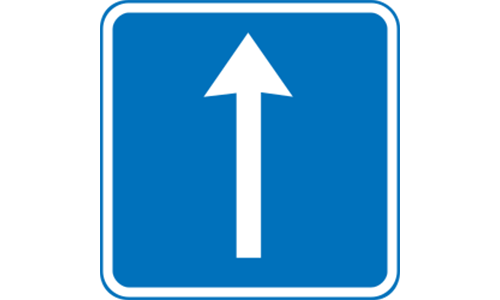 Drivers are required to proceed straight ahead. This sign is typically placed at intersections or on one-way roads where other turns, including left or right, are not permitted to maintain a specific flow of traffic.