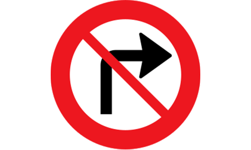 A right turn is prohibited at the junction or intersection where the sign is placed. Drivers must choose an alternative direction of travel.